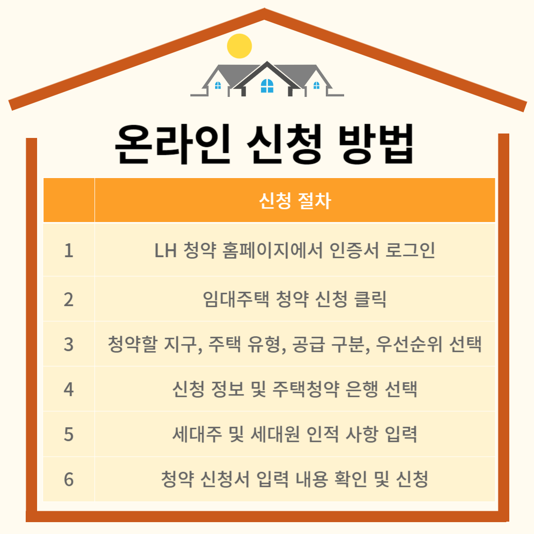 온라인 신청은 LH 청약 홈페이지에서 가능하며 신청 방법은 아래와 같습니다.
